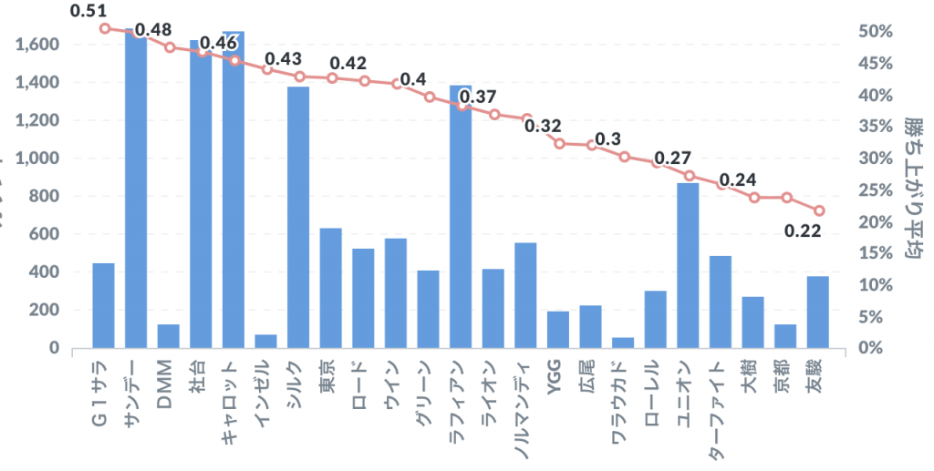 収支と勝ち上がり率では、勝ち上がり率のほうが明確な差がついていることもあるので勝ち上がり率を軸にクラブ選びをすすめたほうがよいと思います。